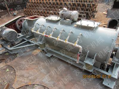 單軸粉塵加濕攪拌機(jī)主要用于電力,冶金等行業(yè)的多管除塵器,電除塵器,重力除塵器及其它親水性好,粘性較差物料的排放處理、通過本機(jī)的攪拌加濕,使干料變?yōu)榫鶆蚨睗竦奈锪希?避免了卸料和運(yùn)輸過程中產(chǎn)生的二次揚(yáng)塵問題、本設(shè)備安裝在灰?guī)欤叶废虏浚扇~輪料機(jī)把干灰均勻地輸入到機(jī)內(nèi),通過旋轉(zhuǎn)的帶螺旋葉片的棘輪把干粉灰攪拌打散,同時加入適量的水進(jìn)行強(qiáng)制混合,并將達(dá)到預(yù)訂濕度的混合料推向出料口排出,達(dá)到加濕排放、本設(shè)備由均勻供料,葉片輸料加水混合擊打加濕構(gòu)成,該設(shè)備結(jié)構(gòu)簡單,密封良好,處理量大,攪拌扭矩大等特點(diǎn)。